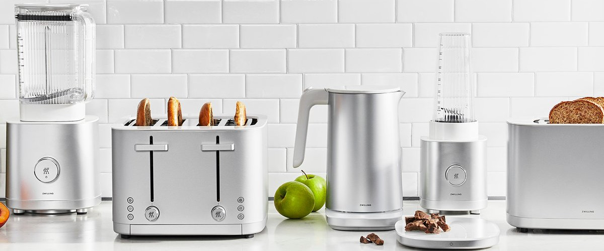 Серия Zwilling Enfinigy – это самая необходимая бытовая техника, которая не занимает много места на Вашей кухне и, в то же время, максимально полезна, благодаря своей многофункциональности. В комплектацию входит электрочайник с сенсорным дисплеем, мощный блендер с запрограммированными автоматическими функциями, тостер с 7 уровнями поджаривания и электронные кухонные весы – как приятный бонус. Немецкая точность, высокое качество, премиальный сегмент, современный и неподвластный времени стиль – четкая характеристика входящей в топ-набор серии Zwilling Enfinigy.