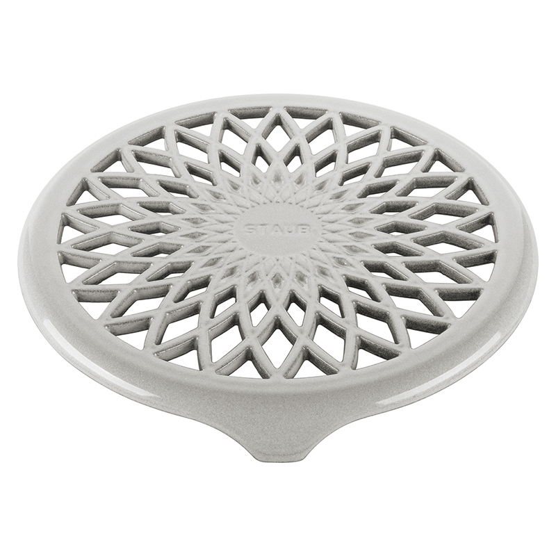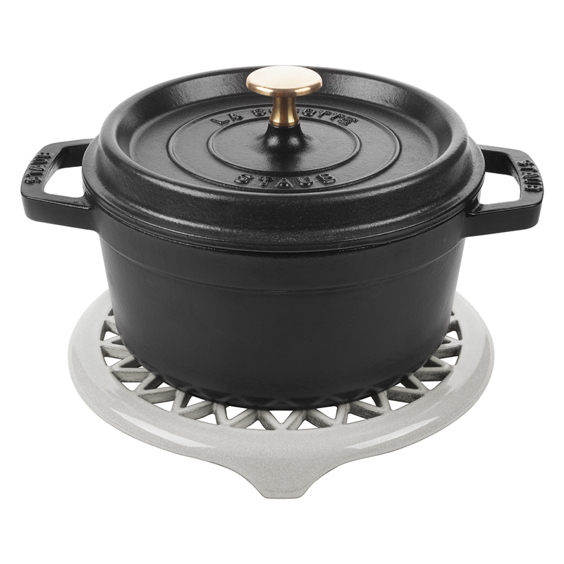 Подставка под горячее Staub - практичный и декоративный аксессуар, который притягивает взгляды благодаря винтажному уникальному дизайну. Отлично подходит для использования вместе с кокотницами, чайниками, формами для выпечки, сковородками и тому подобное.