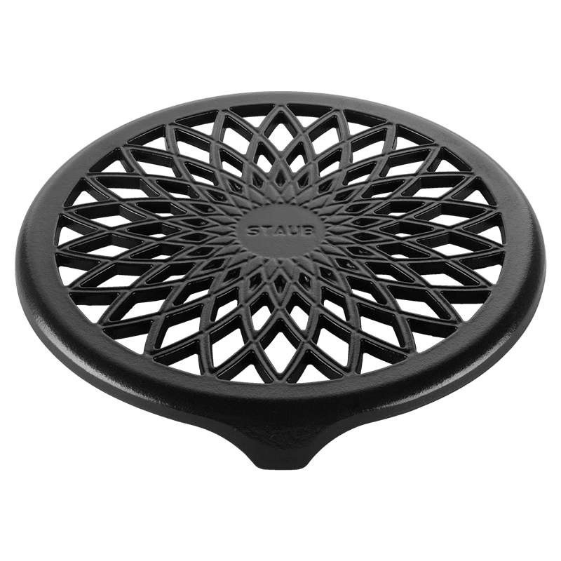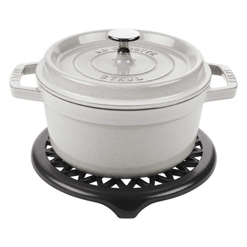 Подставка под горячее Staub - практичный и декоративный аксессуар, который притягивает взгляды благодаря винтажному уникальному дизайну. Отлично подходит для использования вместе с кокотницами, чайниками, формами для выпечки, сковородками и тому подобное.