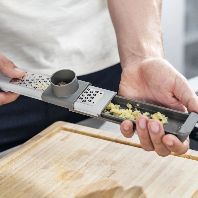 В этом многофункциональном кухонном помощнике мы объединили наши многолетние ноу-хау в области ножей и режущих технологий. Она идеально подходит для натирания самых разных продуктов: ее можно использовать как терку для лимона, пармезана или мускатного ореха. Терка также имеет насадку, которая особенно подходит для обработки мелких продуктов. Благодаря встроенной защите пальцев вы также можете натереть имбирь на мелкой терке, не рискуя пораниться.