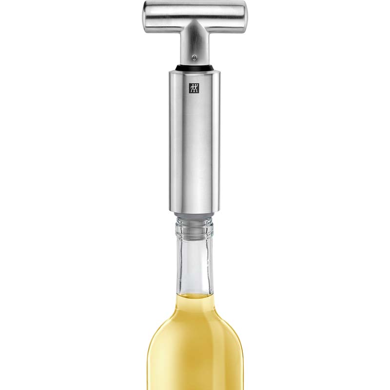 Винный насос от Zwilling вытягивает кислород из открытой бутылки, избегая окисления вина. Таким образом вино остается свежим до семи дней.
