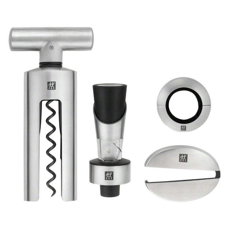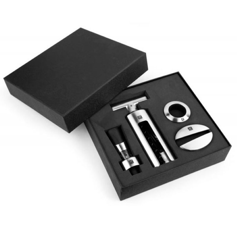 Этот набор сомелье из 4 предметов от ZWILLING® предлагает вам профессиональные инструменты для любителей вина. Они изготовлены из высококачественной нержавеющей стали, что гарантирует долгий срок службы и визуально привлекательную поверхность. Набор упакован в фирменную подарочную упаковку. Прекрасно подойдет ценителям винных изделий для изящных вечеров у камина с бокалом в руках.
