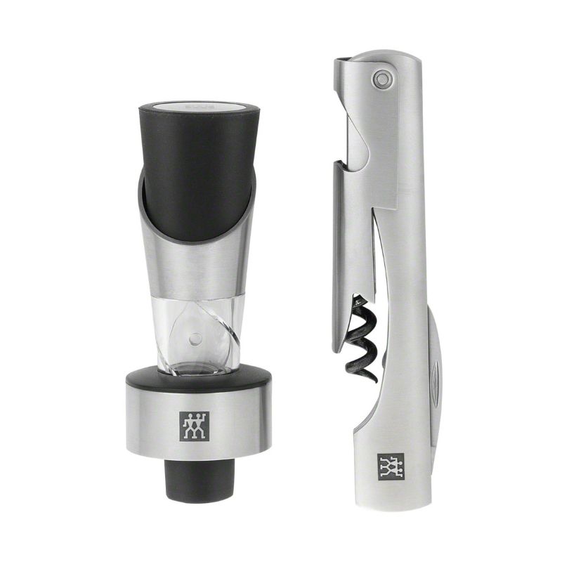 Набор сомелье из 2 предметов от ZWILLING® - идеальный подарок для ценителей вина. Он изготовлен из высококачественной нержавеющей стали, что гарантирует визуально привлекательную поверхность и долгий срок службы. В комплект входит многофункциональный нож 3 в 1 (штопор, резак и открывалка для бутылки) и дозатор для бутылки, который служит еще и временной пробкой для удобного хранения. Набор упакован в фирменную картонную упаковку.