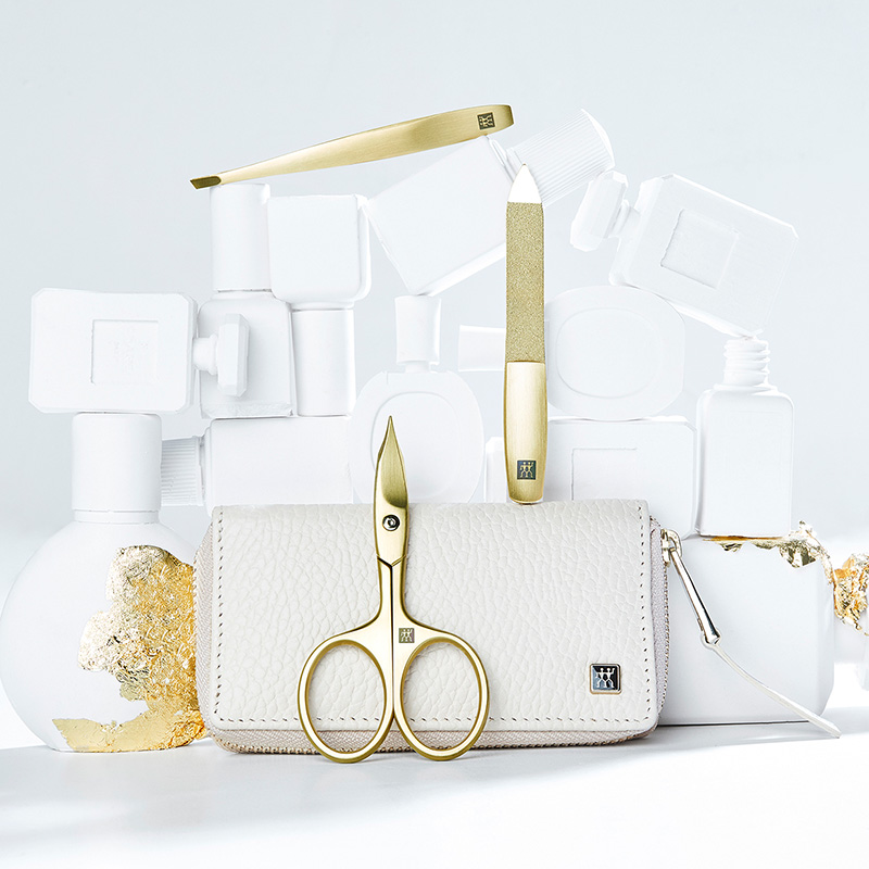 - набор упакован в кремово-белый кожаный чехол с бархатным покрытием внутри