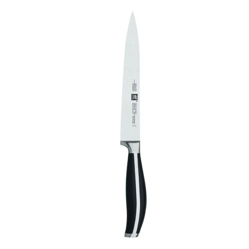 Если вы ищете функциональный и качественный нож для мяса, то вам точно подойдет нож из серии TWIN® Cuisine от ZWILLING. С помощью этой модели можно без труда нарезать как сырое, так и приготовленное мясо. Удобная рукоятка с классическим хвостовиком упрощает работу с ножом при длительном использовании, а лезвие изготовлено из первоклассной стали.