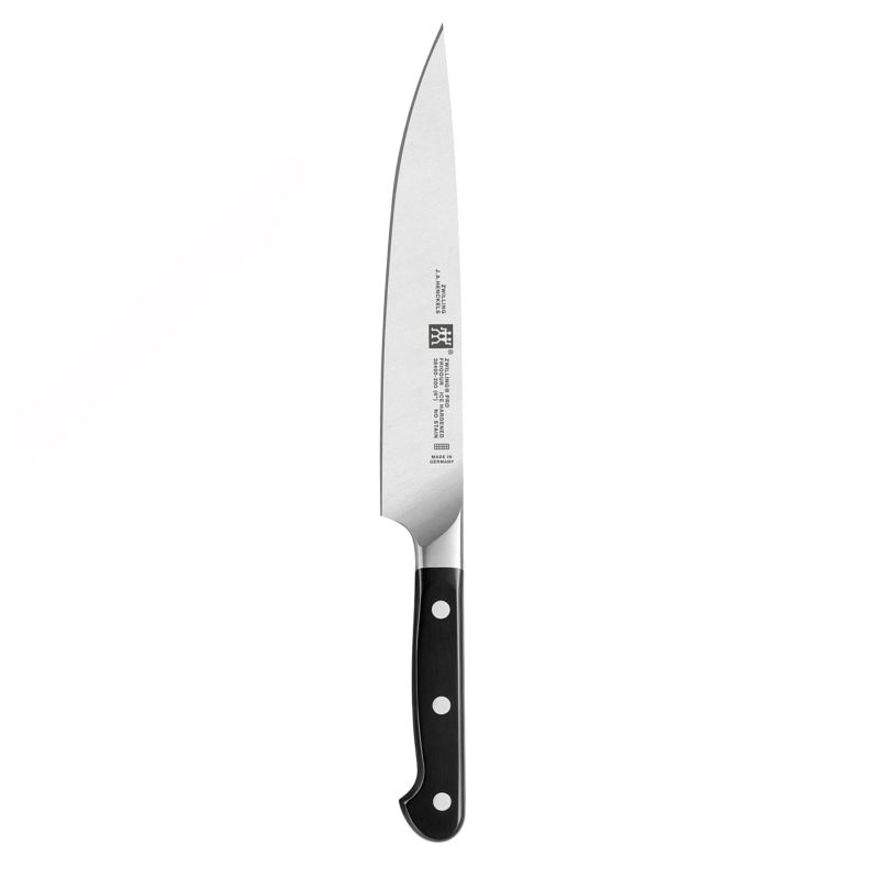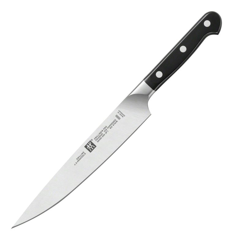 Нож для мяса отличается относительно узким лезвием, которое, тем не менее, очень стабильное и прочное. В сочетании с высокой остротой лезвия ножа это означает, что с его помощью можно легко разделывать большие куски сырого мяса. Тонкая форма с ярко выраженным острием также очень полезна при разделке птицы.