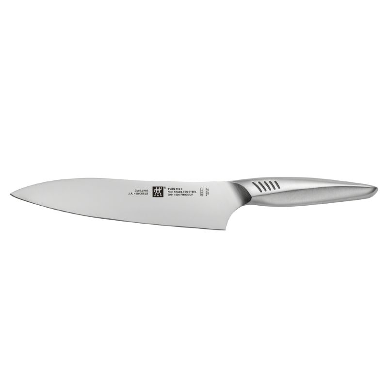 Профессиональный поварской шеф-нож изготовлен из высококачественной нержавеющей стали, идеально сбалансированый, с широким прочным лезвием и гладкой режущей кромкой. Отлично справляется с самыми разными задачами: обычная нарезка, нарезка кубиками или слайсами, разделка, порционирование. Кроме своей функциональности нож еще и поражает своим современным и небанальным дизайном.