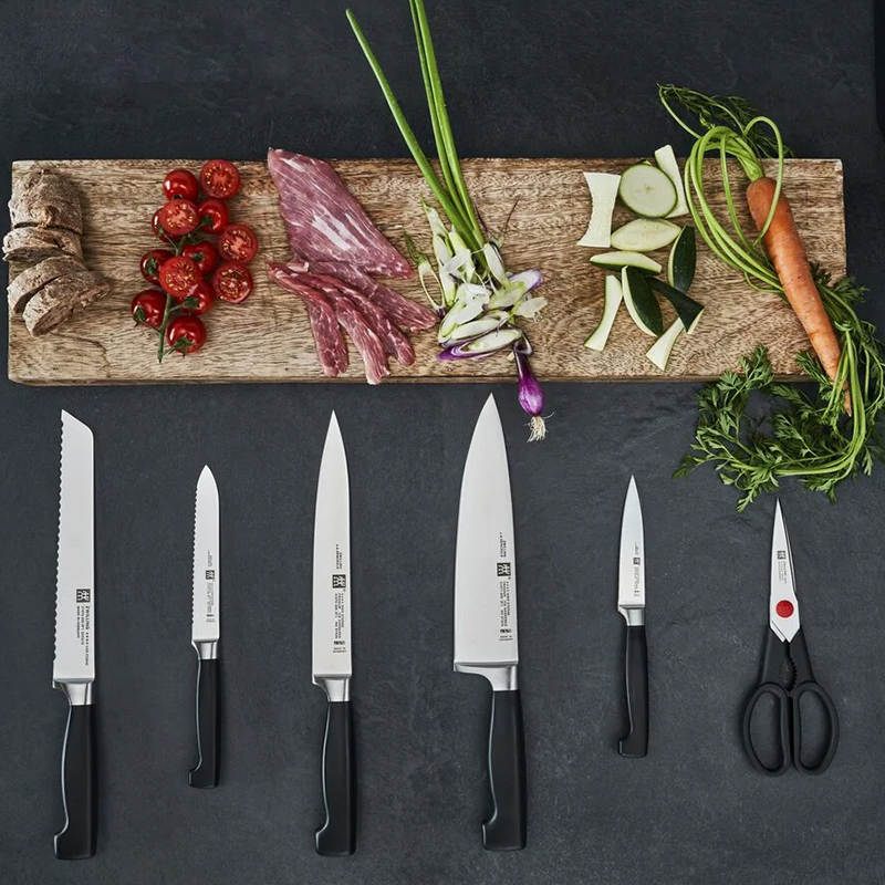 Линейка ножей ZWILLING Four Star представляет на рынке новинку, которая вскоре станет незаменимым инструментом на каждой кухне. Благодаря самозатачивающемуся блоку закаленные лезвия этих высококачественных ножей будут неизменно острыми, сохраняя идеальные режущие свойства. Каждое отверстие адаптировано к точным размерам конкретного ножа, благодаря чему заточка происходит под идеальным углом, что гарантирует долговечность режущей кромки и высочайшее качество в течение многих лет.