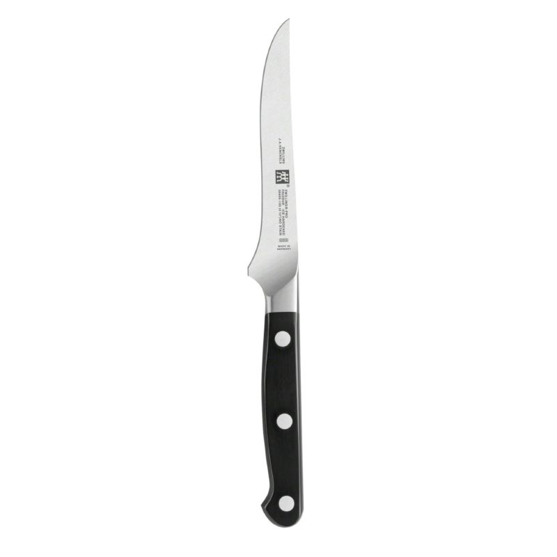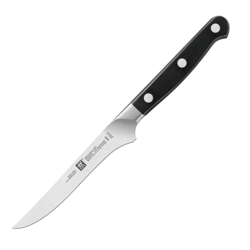Ножи из серии ZWILLING Pro чрезвычайно прочные, надежные и имеют привлекательный внешний вид. Этот нож идеально подходит для нарезки сочного стейка со сковороды, маринованного стейка из гриля или аппетитного венского шницеля. Благодаря рукоятке особой формы нож удобно лежит в руке и может безопасно использоваться.