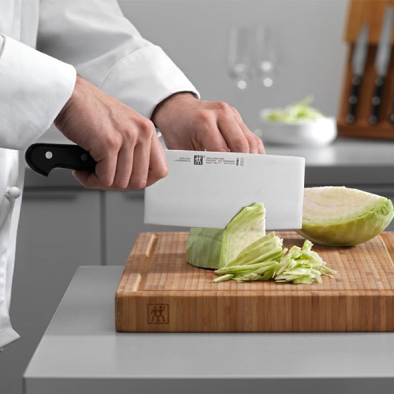 Китайский поварской шеф-нож отличается тем, что имеет широкое и острое лезвие. Он не подходит для грубой рубки или разделки мяса, но прекрасно справляется с деликатной нарезкой овощей, рыбы или мясных продуктов. По функционалу - это все тот же поварской шеф-нож, только воплощенный в форме топорика.