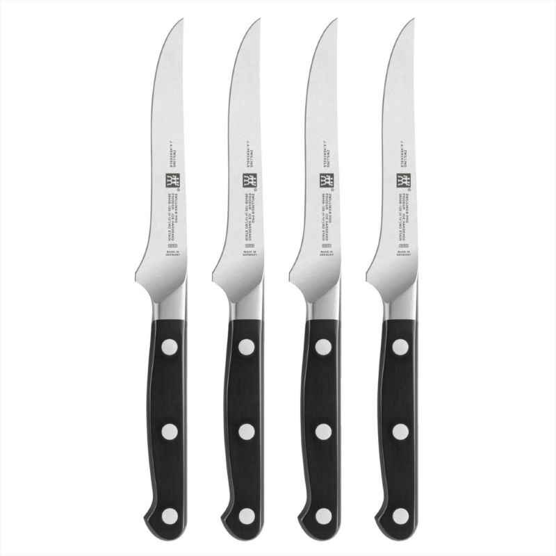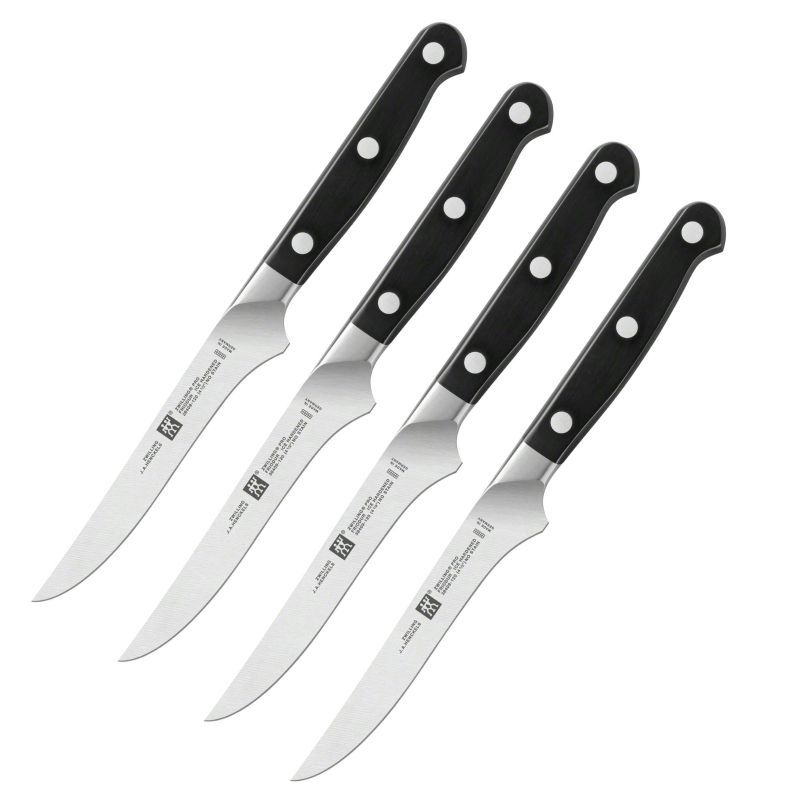 Набор из 4 ножей для стейка серии ZWILLING Pro состоит из высококачественных и прочных ножей. Они идеально подходят, например, для нарезки сочного стейка из говядины, маринованного стейка на гриле, а также всех жареных на сковороде деликатесов. В случае гриль-вечеринки с друзьями этот набор идеально подойдет для сервировки стола на 4 персоны.