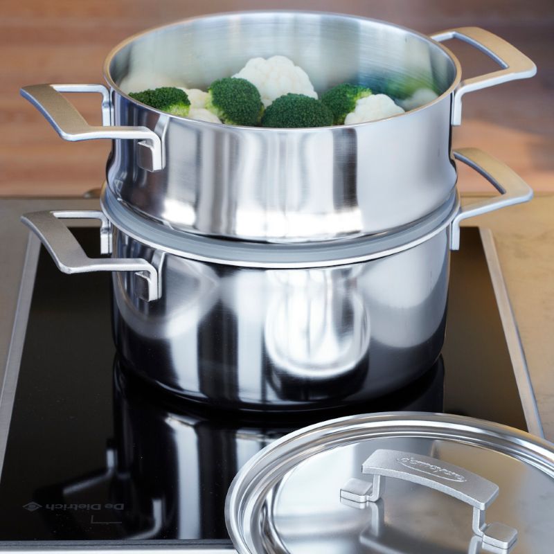 Серия Industry от Demeyere представляет собой высококачественную посуду от бельгийского дизайнера Стефана Шёнинга. Вдохновением для этого послужила американская посуда, поэтому кастрюля имеет чистый, лаконичный и высококачественный вид. Она полностью изготовлена из высококачественной нержавеющей стали. Крышка плотно закрывается и обеспечивает энергосберегающее приготовление пищи, а многослойное дно равномерно распределяет тепло.