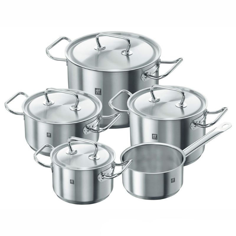 Посуда Zwilling является идеальным помощником для современного и здорового приготовления пищи. Серия наборов посуды Twin Classic – это простая и универсальная посуда с лаконичным дизайном и полированной, глянцевой отделкой. Благодаря ручкам из стали посуду также можно использовать для приготовления блюд в духовке. Крышки закрываются особенно плотно, что экономит энергию и позволяет готовить пищу с сохранением витаминов, а многослойное дно с алюминиевой сердцевиной обеспечивает равномерное распределение тепла.