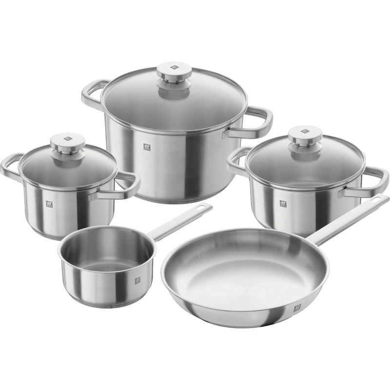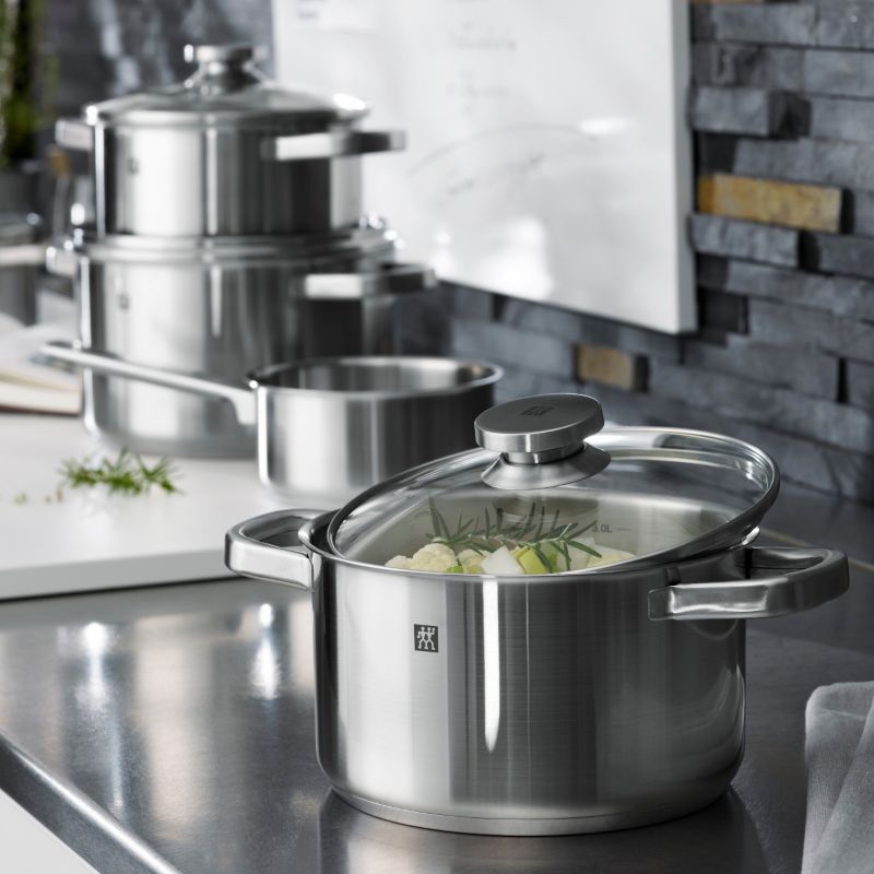 С набором посуды из линейки ZWILLING Joy вы полностью экипированы и с легкостью приготовите даже самые необычные блюда. Современный и четкий дизайн этого набора впишется в любую кухню. Благодаря ручкам из стали посуду также можно использовать для приготовления блюд в духовке. Стеклянные крышки плотно закрываются и обеспечивают энергосберегающее приготовление пищи, а многослойное дно с алюминиевой сердцевиной обеспечивает равномерное распределение тепла.