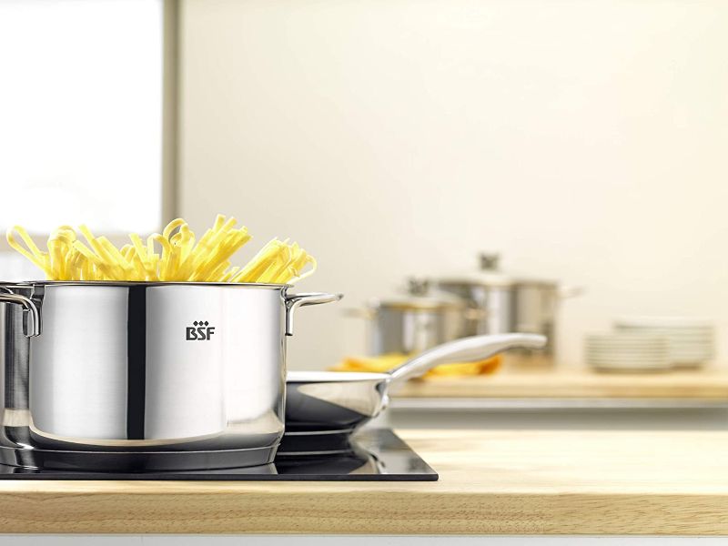 Набор кастрюль Bordeaux изготовлен из высококачественной нержавеющей стали с высокой стойкостью к коррозии. Многослойное дно с алюминиевой сердцевиной равномерно распределяет тепло по всему корпусу и способствует быстрому разогреву кастрюли. Все кастрюли, кроме ковша, укомплектованы стеклянными крышками, которые плотно закрываются и позволяют готовить пищу быстро и с сохранением витаминов.