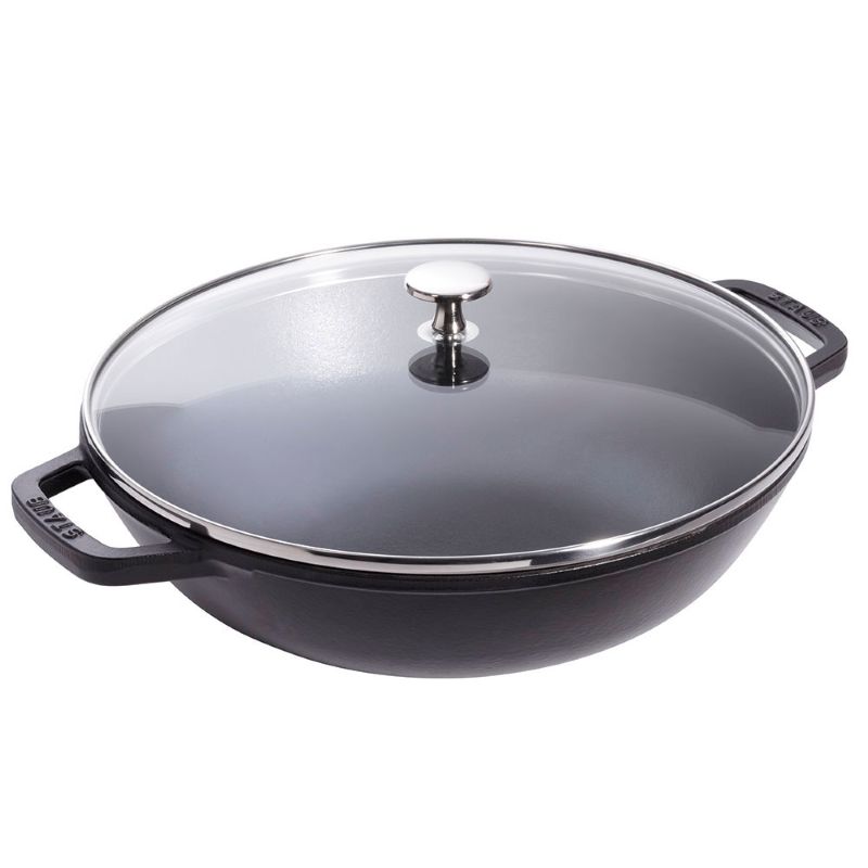 Сковорода-вок от STAUB позволяет создавать оригинальные рецепты из рыбы, мяса, тофу или овощей: ингредиенты готовятся особенно быстро, потому что при постоянном перемешивании они соприкасаются с раскаленным чугуном со всех сторон. При таком способе приготовления овощи остаются особенно хрустящими, и в то же время блюда содержат больше питательных веществ и витаминов, чем при обычном приготовлении в кастрюле. В дополнение к рисовой лапше или овощным жареным блюдам, без особых усилий можно приготовить или разогреть гарниры.