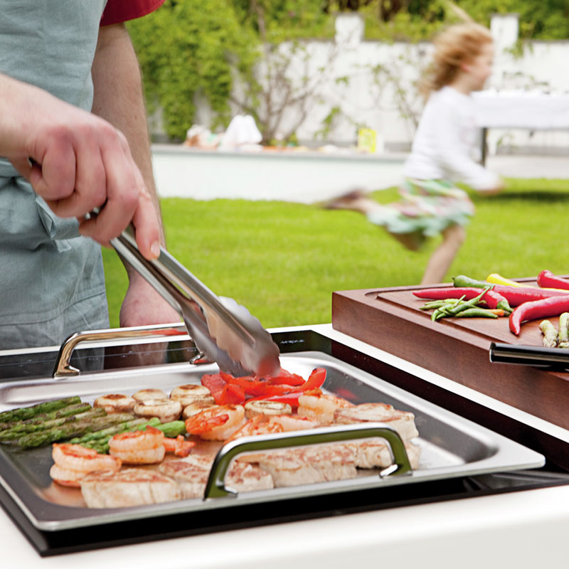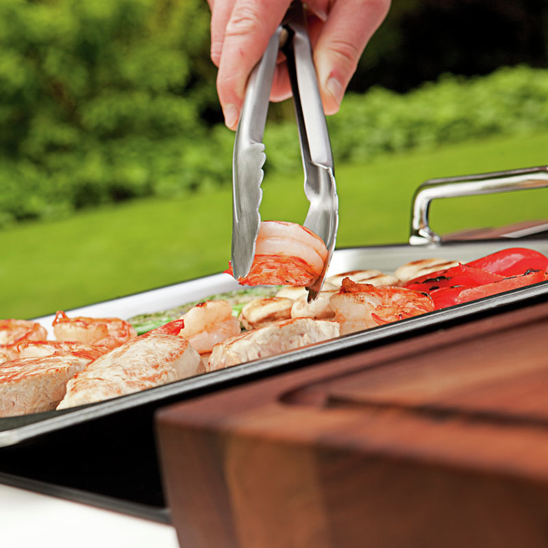 Эта универсальная посуда отлично подходит как для обычной плиты (она помещается на двух конфорках одновременно, а эксклюзивный 7-слойный материал оптимально распределяет тепло), так и для стейков на гриле или для запекания овощей или птицы в духовке. Если хотите привнести в свою кулинарию немного экзотики - это деко можно использовать для приготовления блюд в стиле теппаньяки.