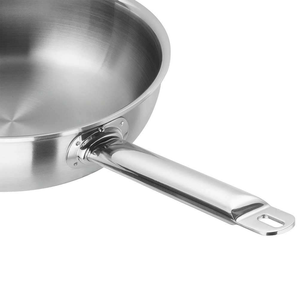 Если вы хотите на некоторое время почувствовать себя профессиональным шеф-поваром - выбирайте посуду из серии ZWILLING Pro. Например, эта стильная сковорода очень практична, благодаря своим высоким бортам - ингредиенты легко перемешиваются, ничего не выпадает и ее можна использовать фактически для чего угодно: для жарки, для приготовления соусов или даже полноценного гарнира. Приятный бонус: ручка из нержавеющей стали остается прохладной в течение длительного времени, поэтому вы можете безопасно перемещать сковороду в любое время.