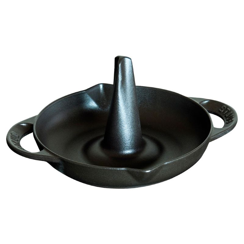 Поместите птицу на ростер и поставьте в духовку - она приготовится равномерно со всех сторон и с красивой корочкой. Курица также никогда не будет сырой внутри, так как наконечник ростера также сделан из чугуна, который особенно хорошо передает тепло и птица отлично готовится изнутри. Излишки жира стекают в поддон диаметром 24 см, чтобы ваша птица была нежной и с низким содержанием жира. Ростер для курицы Staub подходит для всех типов духовок, а также может использоваться для других видов птицы.