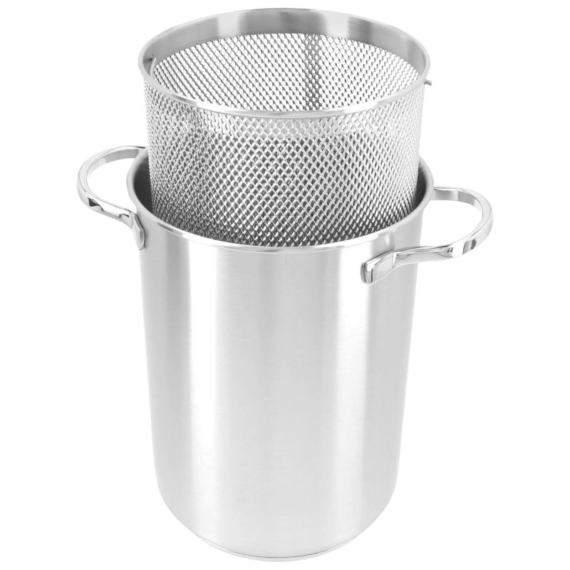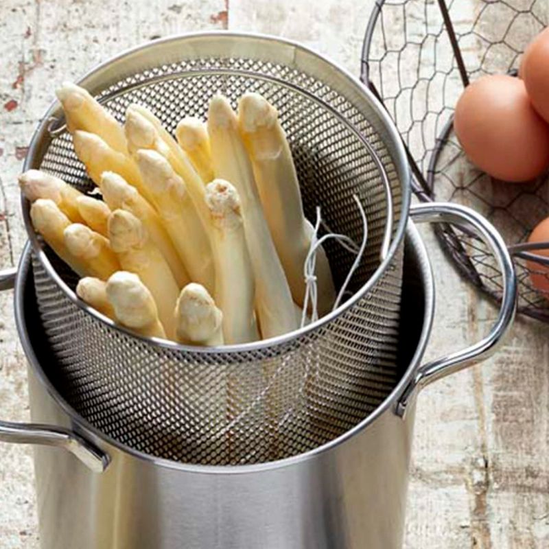 Эта узкая и высокая кастрюля созданная специально для комфортного приготовления спаржи или пасты - вместо того, чтобы искать дуршлаг и сливать воду, просто поместите спаржу или пасту в сетчатую корзину-вкладыш и опустите в кастрюлю с водой. Если же вы любите бланшировать, варить и готовить на пару, эта универсальная и удобная кастрюля также прекрасно справится и с такой задачей.