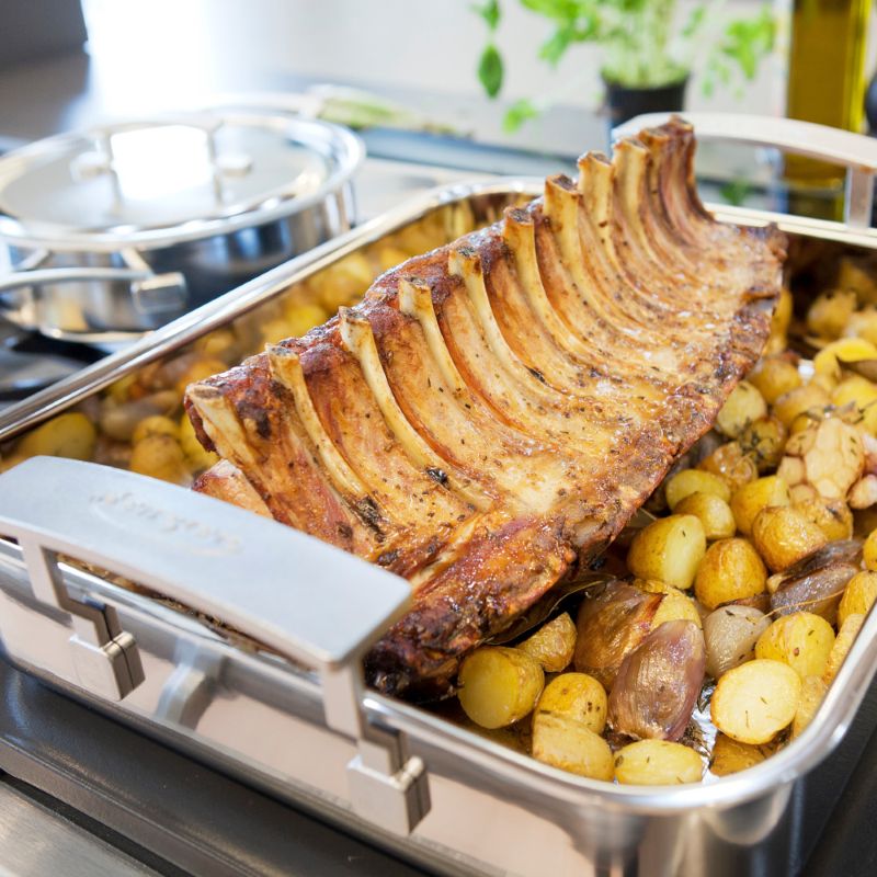 Удобная и красивая посуда для запекания легко помещается в духовку стандартного размера и гарантирует восхитительный результат приготовления. Но ее также можно использовать для поджаривания овощей или мяса прямо на конфорках обычной плиты или же на индукционной поверхности - эксклюзивный 5-слойный материал, из которого сделана посуда, оптимально распределяет тепло. Видео для кулинарного вдохновения здесь.