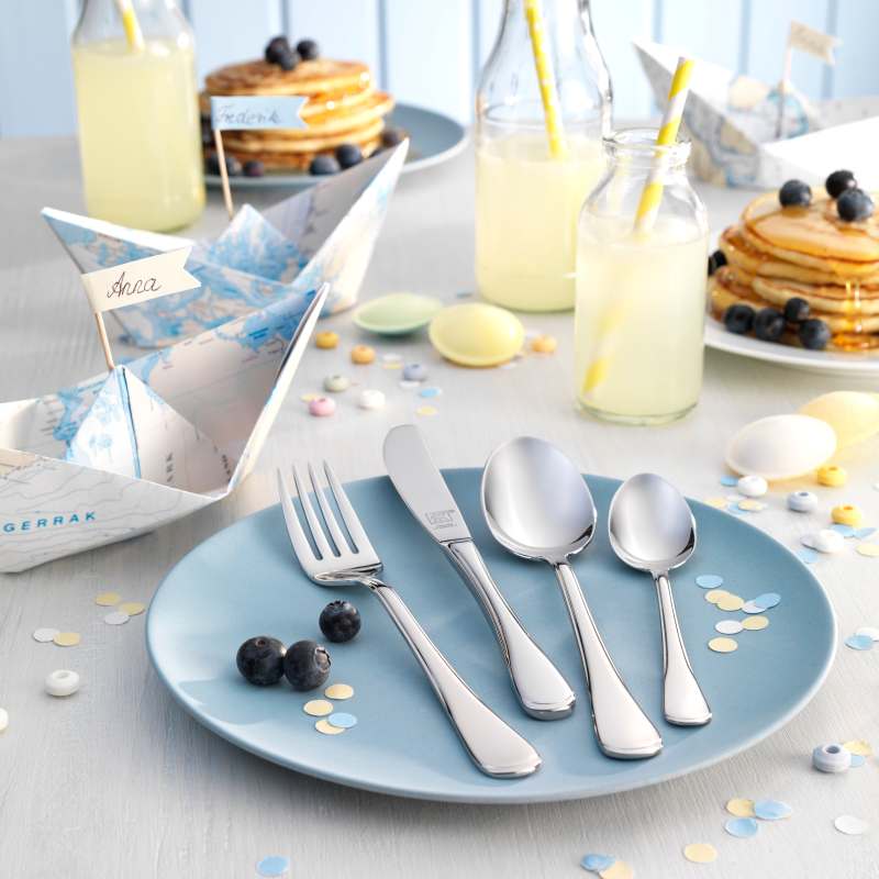 Детские столовые приборы "Filou" изготовлены из высококачественной нержавеющей стали, гигиенические, не подвержены ржавчине. Без острых краев - для безопасного обращения кончики и режущая кромка закруглены и слегка затуплены. За приборами особенно легко ухаживать - их можно мыть в посудомоечной машине.