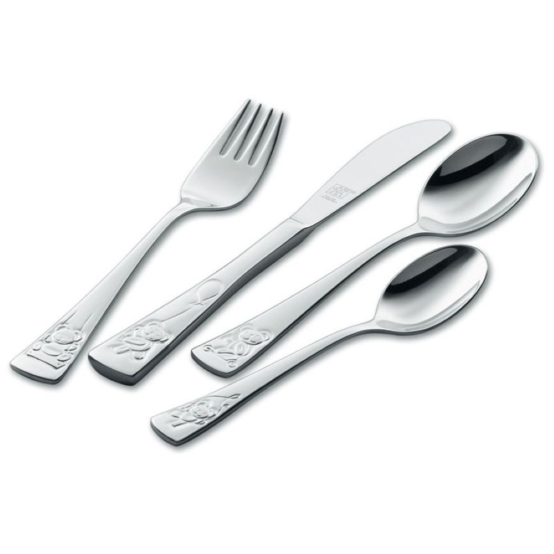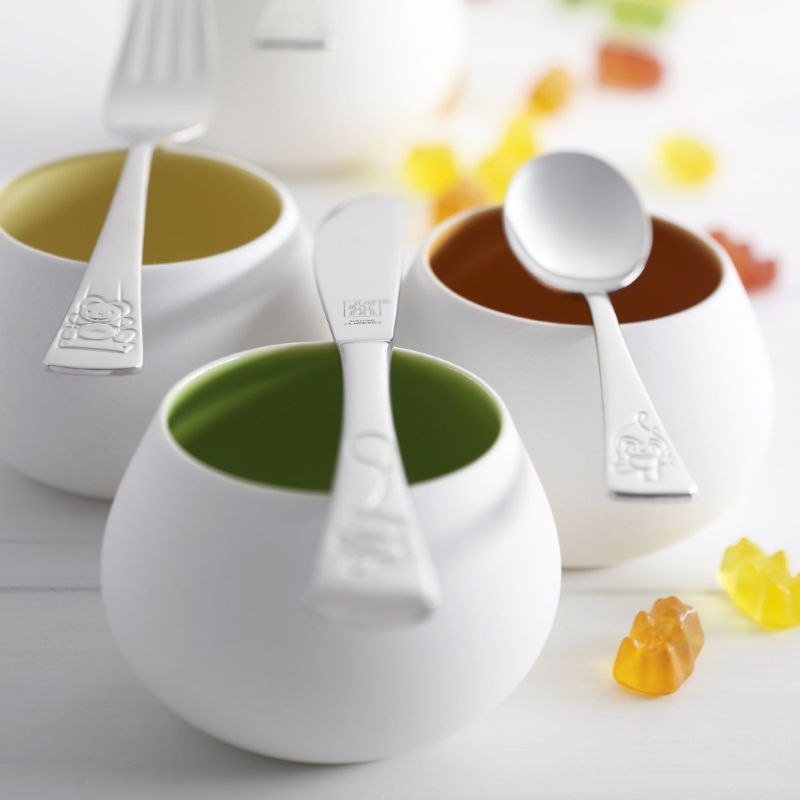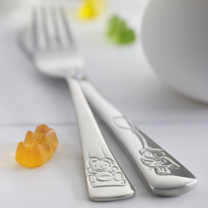 Детские столовые приборы "Медвежонок Тедди" изготовлены из высококачественной нержавеющей стали, гигиенические, не подвержены ржавчине. Без острых краев - для безопасного обращения кончики и режущая кромка закруглены и слегка затуплены. За приборами особенно легко ухаживать - их можно мыть в посудомоечной машине. Выгравированные картинки привлекают внимание ребенка и превращают обыденный прием пищи в приятное времяпрепровождение за столом.
