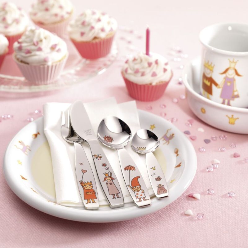 Детские столовые приборы "Принцесса Эмили" изготовлены из высококачественной нержавеющей стали, гигиенические, не подвержены ржавчине. Без острых краев - для безопасного обращения кончики и режущая кромка закруглены и слегка затуплены. За приборами особенно легко ухаживать - их можно мыть в посудомоечной машине. Яркие картинки привлекают внимание ребенка и превращают обыденный прием пищи в приятное времяпрепровождение за столом.
