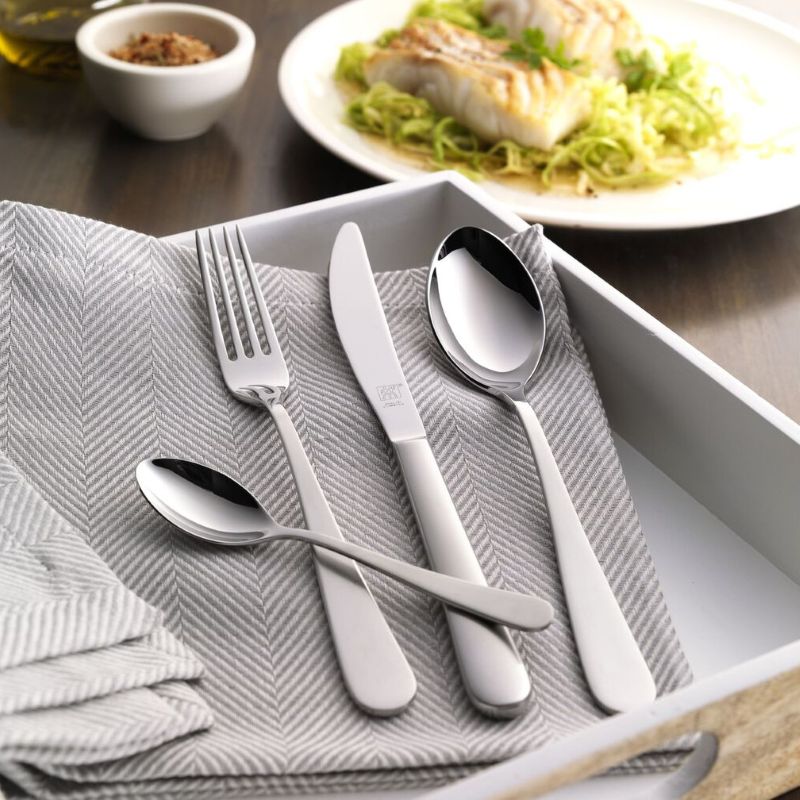 Этот набор ZWILLING Greenwich для 12 человек включает ложки, вилки и ножи как для ежедневного приема пищи, так и для особых случаев. В комплект также входят чайные/кофейные ложечки и вилочки для торта - на случай приятного чаепития с десертными закусками. Кроме того, в наборе есть практичные вспомогательные инструменты для сервировки, такие как ложка для супа и соуса, вилки для мяса, ложка для сахара - чтобы приготовить себе вкусный послеобеденный кофе.