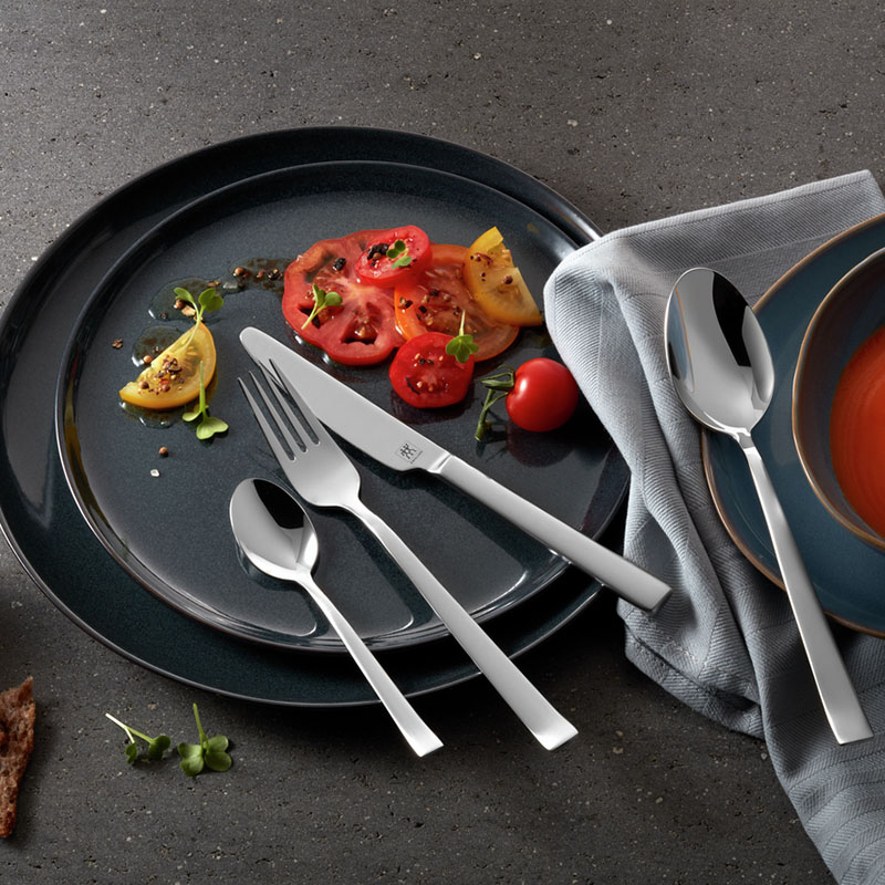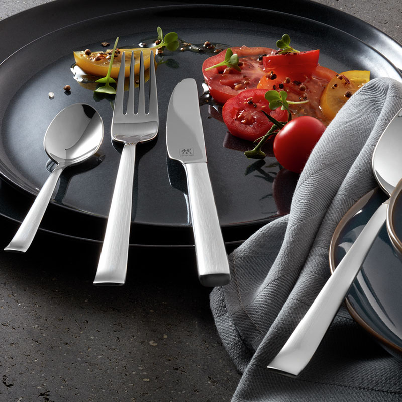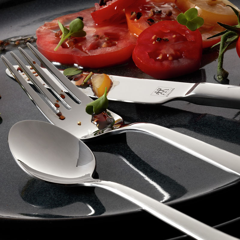 Этот набор ZWILLING Сult для шести человек включает ложки, вилки и ножи как для ежедневного приема пищи, так и для особых случаев. В комплект также входят чайные/кофейные ложечки и вилочки для торта - на случай приятного чаепития с десертными закусками. Приборы упакованы в стильную фирменную коробку.