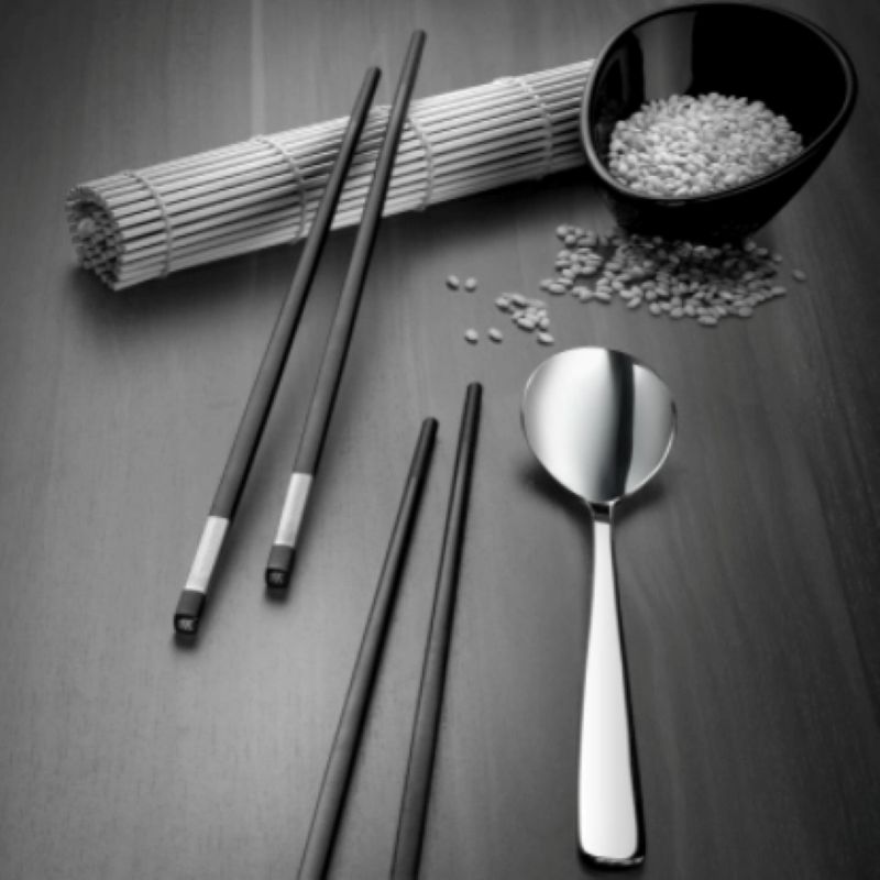 Этот элегантный набор от Zwilling - то, что надо настоящим ценителям азиатской кухни. Набор укомплектован двумя ложками из нержавеющей стали и четырьмя парами палочек для еды из синтетического материала. Набор упакован в коробку, в которой японские палочки очень красиво смотрятся на красном фоне - такой комплект в шикарной упаковке станет идеальным подарком для близких друзей.
