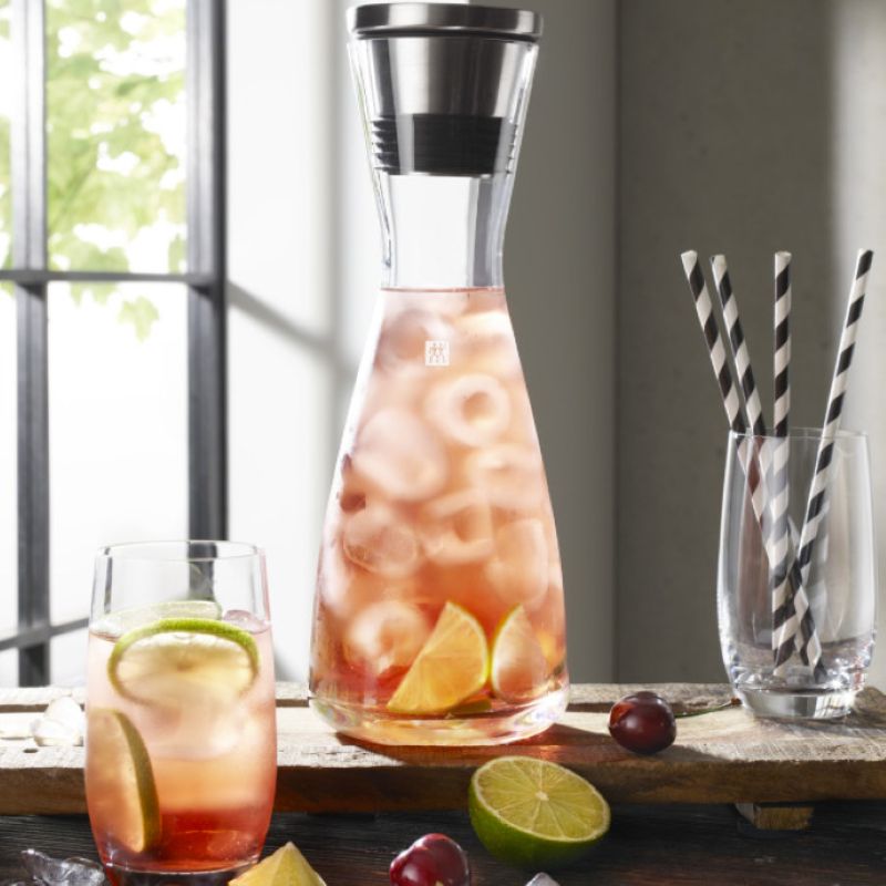 Стеклянный графин с крышкой из нержавеющей стали ZWILLING Prédicat - это красиво оформленный сосуд, в котором вы можете подавать ароматизированную воду или свежие соки с фруктами и травами. Благодаря плотно прилегающей крышке с силиконовой вставкой содержимое надежно защищено от насекомых. Высококачественное хрустальное стекло изготовлено исключительно из натуральных материалов и не содержит свинца и кадмия. Можно мыть в посудомоечной машине.