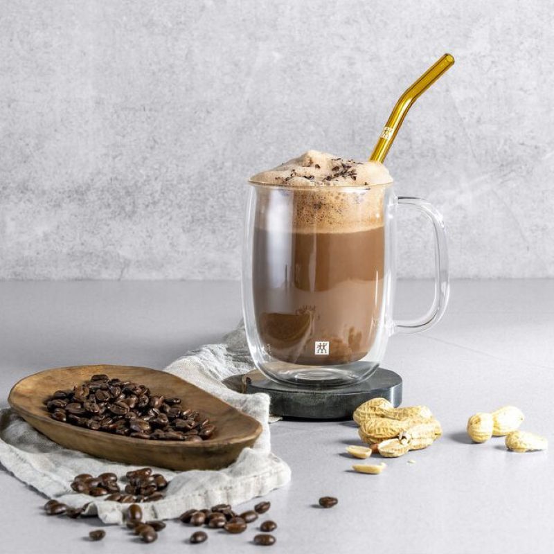 Приготовьте восхитительный горячий напиток для своих гостей или для себя в кружках для латте из серии ZWILING Sorrento Plus. Кружки в наборе из 2 предметов имеют объем 450 мл и изготовлены из высококачественного боросиликатного стекла с двойными стенками. Оно легкое и прочное, обеспечивает постоянную температуру внутри и приятное ощущение прохлады на внешней стенке. Вы также можете легко мыть чашки в посудомоечной машине или разогревать напитки в микроволновой печи. Ручка предотвращает выскальзывание стекла из рук и, таким образом, гарантирует надежный захват при транспортировке.