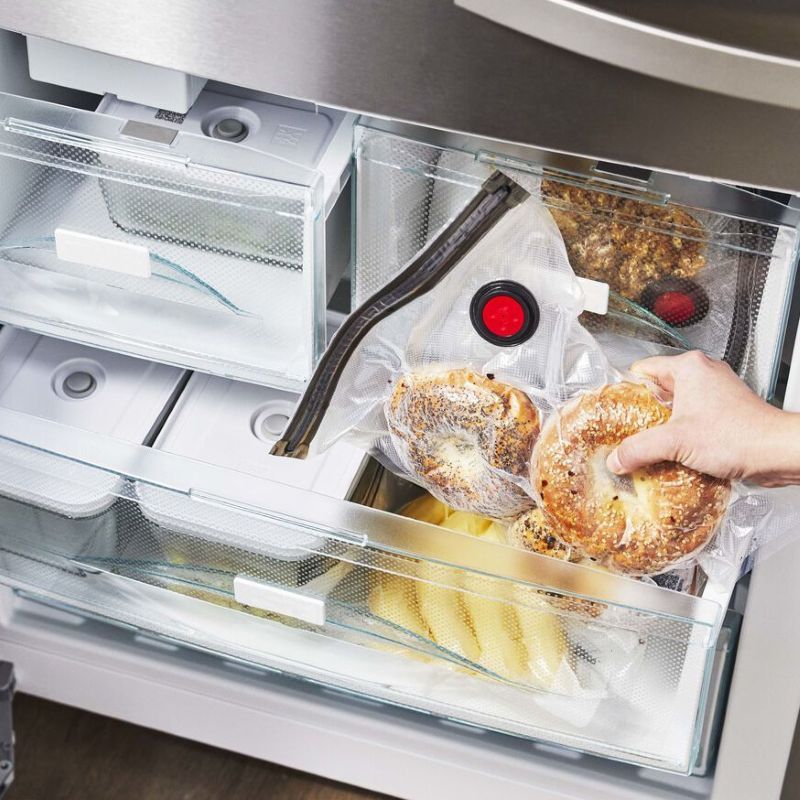 Вакуумные пакеты Fresh & Save применяются вместе с вакуумным насосом и позволяют хранить продукты свежими до пяти раз дольше, чем обычно. С их помощью можно замораживать обеды, разогревать их, сохранять продуктыи свежими длительное время или мариновать стейки для гриль-вечеринки. Как это работает: положите продукты в пакет и закройте его с помощью зип-молнии. Теперь установите беспроводной вакуумный насос на соответствующий клапан - после стыковки он удаляет воздух из пакетов за считанные секунды и автоматически останавливается, как только создается достаточный вакуум. Теперь все, что вам нужно сделать, это нажать кнопку в центре красного силиконового клапана, чтобы надежно закрыть его. Каждый пакет имеет индивидуальный идентификатор, чтобы вы могли быстро найти замороженные продукты. Просто отсканируйте QR-код и отследите вакуумный пакет через приложение ZWILLING Culinary World. Благодаря функции напоминаний в бесплатном приложении вы всегда будете знать, когда хранящиеся продукты нужно использовать.