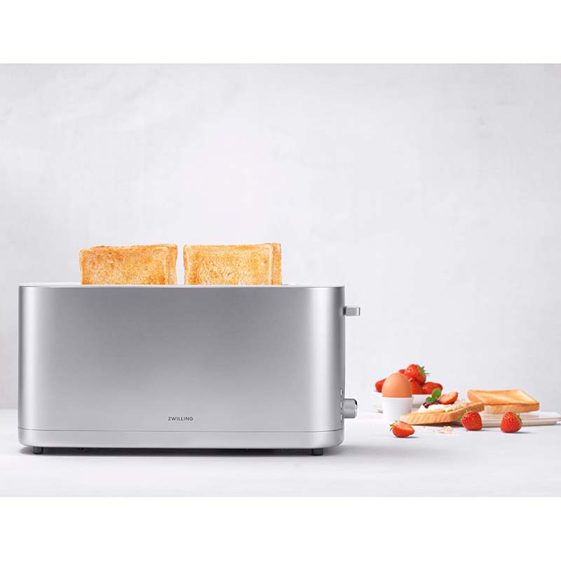 Серия Zwilling ENFINIGY - это самая необходимая бытовая техника, которая очень функциональна и при этом не занимает слишком много места. Этот высококачественный тостер мощностью 1800 Вт - как раз то, что нужно вашей кухне: он автоматически выключается по истечении установленного времени жарки, каждый процесс можно немедленно прервать кнопкой остановки, крошки попадают в легко снимаемый поддон, а готовые тосты не "вылетают" из тостера, а благодаря функции мягкого подъема плавно поднимаются вверх. Помимо 7 уровней подрумянивания тостер также имеет 3 автоматические программы. Видеообзор тостера - жмите здесь.