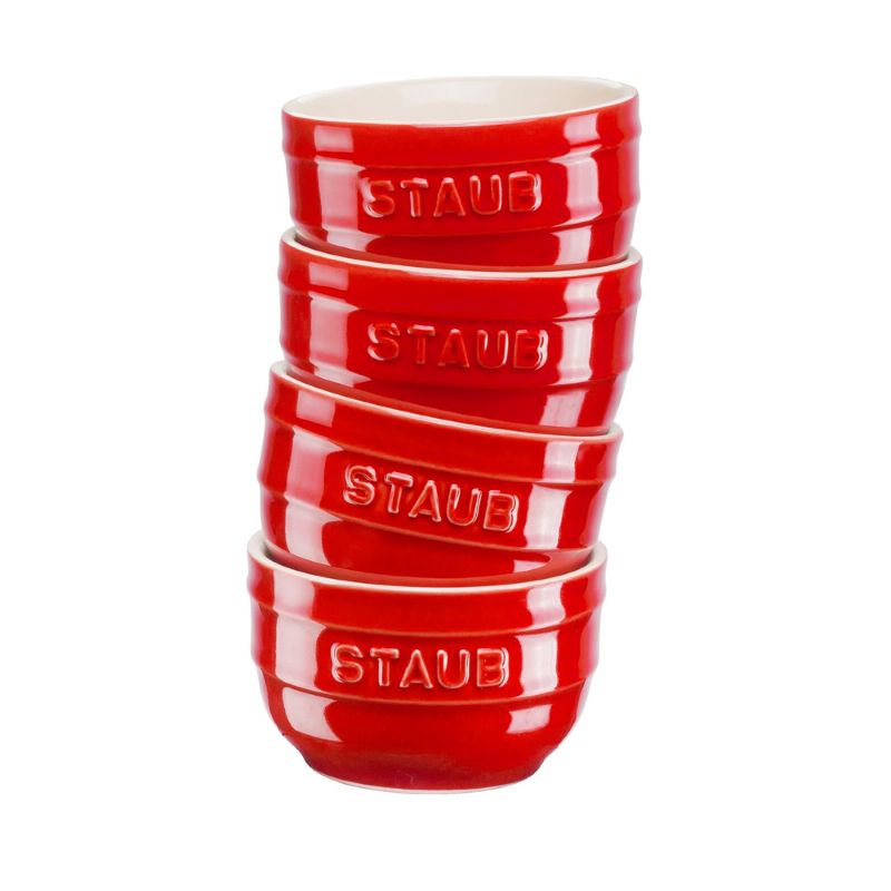 Цей набір з чотирьох невеликих мисок ідеально підходить для сервірування окремих порцій закусок, гарнірів або приготування десертів в духовці / мікрохвильовці. Завдяки високоякісній кераміці вони дуже міцні і забезпечують оптимальний розподіл тепла. Емальована поверхня забезпечує легкість у догляді та стійкість до подряпин. Можна мити в посудомийній машині.