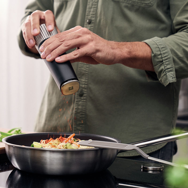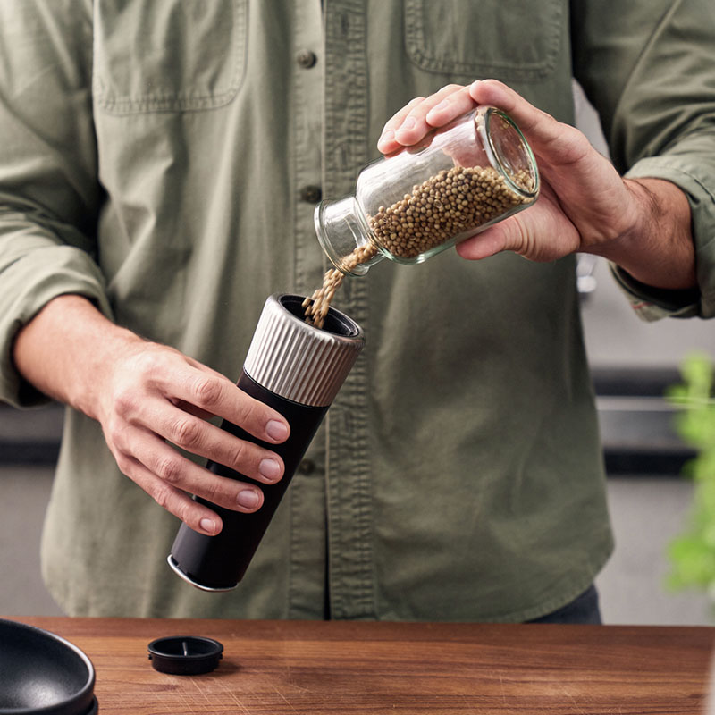 Два млинки – подвійний вибух смаків на вашій кухні! ZWILLING Spices – це інноваційний комплект млинків для спецій у стильному чорному та кольорі слонової кістки. Завдяки перевернутому дизайну, механізм подрібнення розташований зверху, що запобігає розсипанню спецій та зберігає чистоту вашого столу.