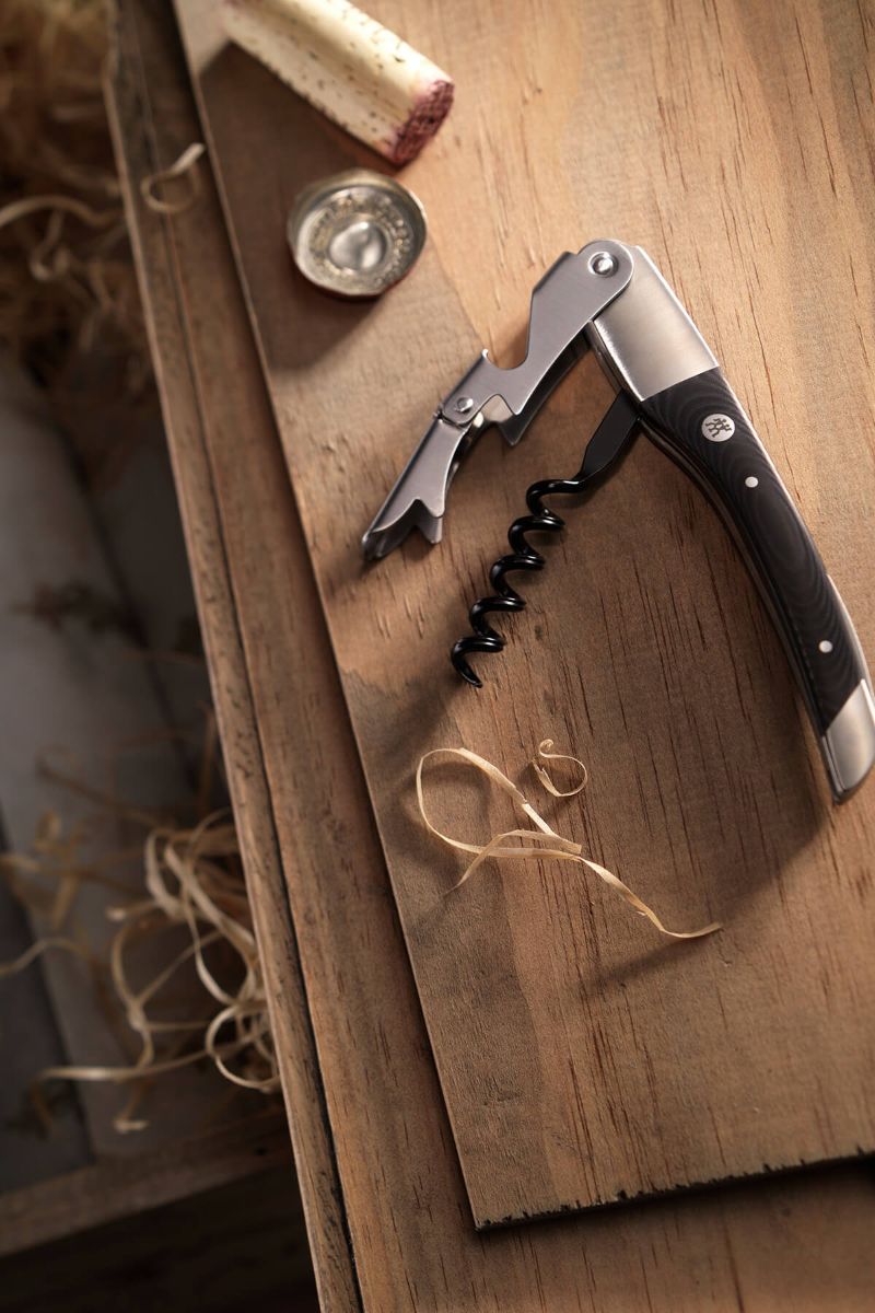 Ніж офіціанта із серії ZWILLING Sommelier поєднує функції ножа для фольги, штопора і відкривалки для пляшок. Функціональний ніж із нержавіючої сталі має вишукану ергономічну ручку із мікарти. Загартований, рифлений і кований штопор має антипригарне покриття, двоступеневий механізм з гнучким шарніром забезпечує легке обертання та виймання пробки. Це ідеальний помічник для сомельє, тому що його функція 3-в-1 дозволяє легко відкривати пляшки, видаляти пробки та розрізати фольгу.