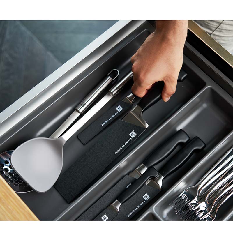 Чохол призначений для зберігання ножа з лезом довжиною до 8 см та шириною до 2,2 см. Він виготовлений із міцного пластику та має м'яку флісову внутрішню частину.