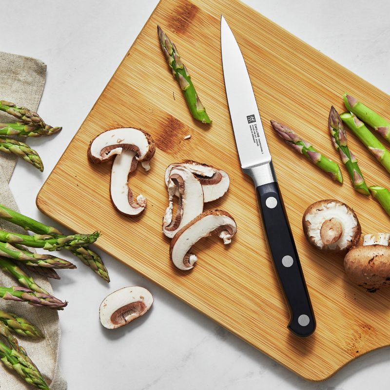 Найкращі ріжучі властивості і відмінний баланс - це, звичайно ж, про ножі з серії PROFESSIONAL S. В комплект входить ніж для овочів і фруктів з тонким лезом, він легкий і універсальний - ідеально підходить для очищення овочів і фруктів і навіть для нарізки невеликих шматків м'яса. А доповнює цей універсальний дует великий кухарський ніж з широким лезом, за допомогою якого ви можете нарізати м'ясо, рибу, овочі, а також подрібнювати зелень.
