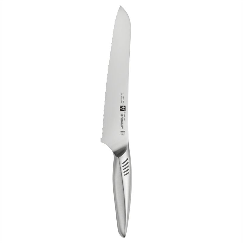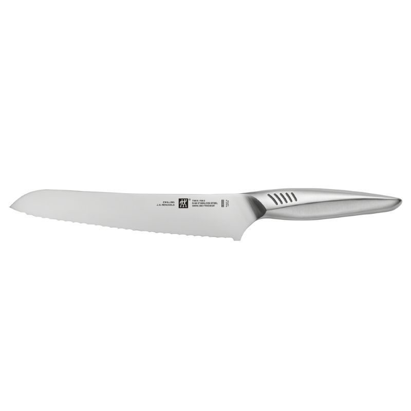 Ніж для хліба із серії ZWILLING TWIN Fin II є шедевром з точки зору функціональності та якості. Виготовлений повністю з нержавіючої сталі. Ручка ергономічної форми з декоративними елементами, що підкреслюють футуристичний дизайн ножа. У цьому ножі вдало поєдналися багатовікові японські традиції і безкомпромісна якість від ZWILLING.