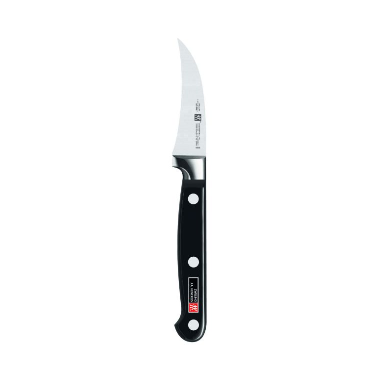 Невеликий універсальний ніж спеціально створений для очищення фруктів і овочів. Завдяки міцному вигнутому вістрі можна легко видалити зіпсовані чи непотрібні ділянки. Лезо легко ковзає по матеріалу, а кількість відходів залишається гранично низьким. А підійшовши до справи з творчістю і фантазією - овочі можна перетворити в оригінальні прикраси для святкового фуршету за допомогою цього чудового ножа від ZWILLING.