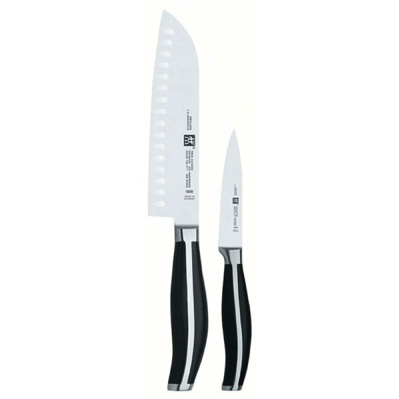 Склад набору: ніж для чищення овочів 100 мм, ніж Сантоку з хвилястою кромкою 180 мм