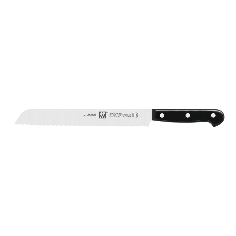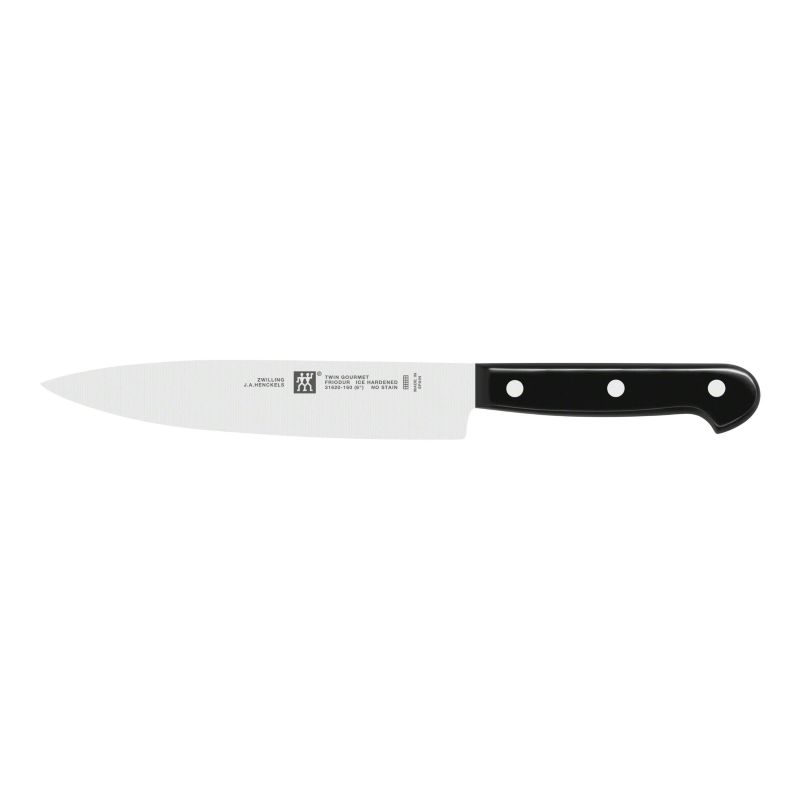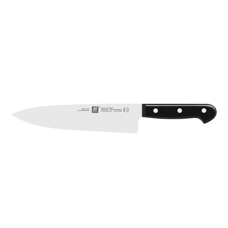Набір з 9 предметів:Ніж для овочів і фруктів. 100 ммНіж універсальний. 130 ммШеф-ніж кухарський. 200 ммНіж для хліба. 200 ммНіж для м'яса. 150 ммВилка для м'ясаМусат сталевийНожиці універсальніДерев'яна підставка для ножів