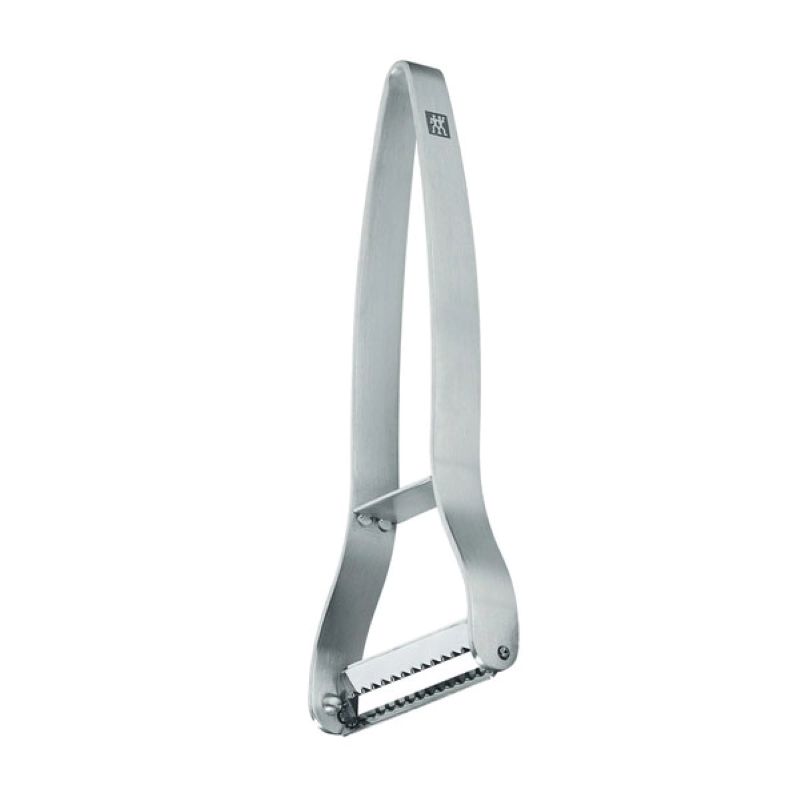 Конструкція цієї овочечистки від ZWILLING ідеально адаптована до поставленого завдання: прорізи для лез сконструйовані таким чином, що шкірка не може потрапити в них. А завдяки рухомій насадці подвійне лезо може безпечно очищати овочі або фрукти різної форми і переміщатися в будь-якому напрямку.