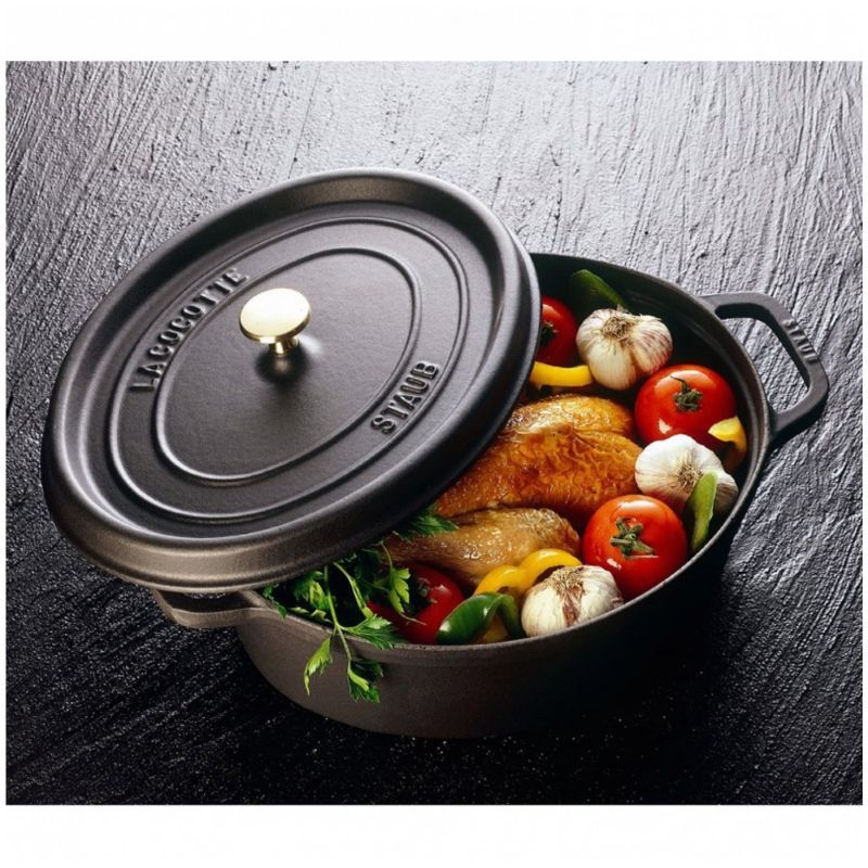 Ця кокотниця овальної форми чудово підійде для приготування запіканок, рагу, для смаження і тушкування м'яса та інших ваших улюблених страв. Завдяки емальованому покриттю вона має антипригарні властивості і зберігає справжній смак продуктів. Спеціальна структура кришки утворює систему самозволоження - волога постійно циркулює всередині каструлі і робить страву більш соковитою і корисною. Виготовлена з чавуну, кокотниця прекрасно накопичує тепло і повільно та рівномірно віддає його - таким чином їжа готується особливо делікатно. А при безпосередньому сервіруванні столу вона зберігає вже давно подані страви в теплі ще тривалий час.