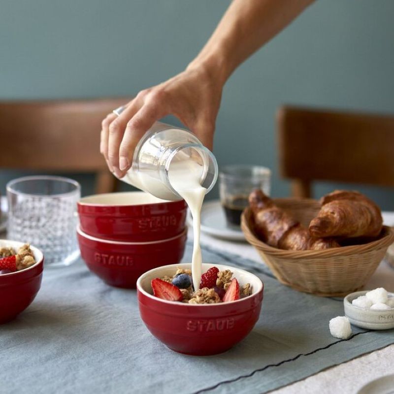 Завдяки класичному дизайну посуд STAUB гармонійно доповнює будь-яку ідею сервірування столу. Ці миски виготовлені з високоякісної кераміки та оброблені вручну для ідеально гладкої поверхні. Завдяки емальованому покриттю вони легко миються, стійкі до подряпин та ударів. Їх можна складати один на одного для зручності зберігання, також використовувати в мікрохвильовій печі та посудомийній машині. Ці миски можуть легко стати вашим улюбленим посудом на весь день: мюслі або смузі на сніданок, суп або салат на обід і завершіть день смачною вечерею, де ви можете подати окремі порції овочів або ж рису.