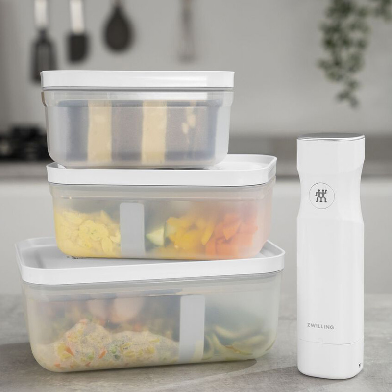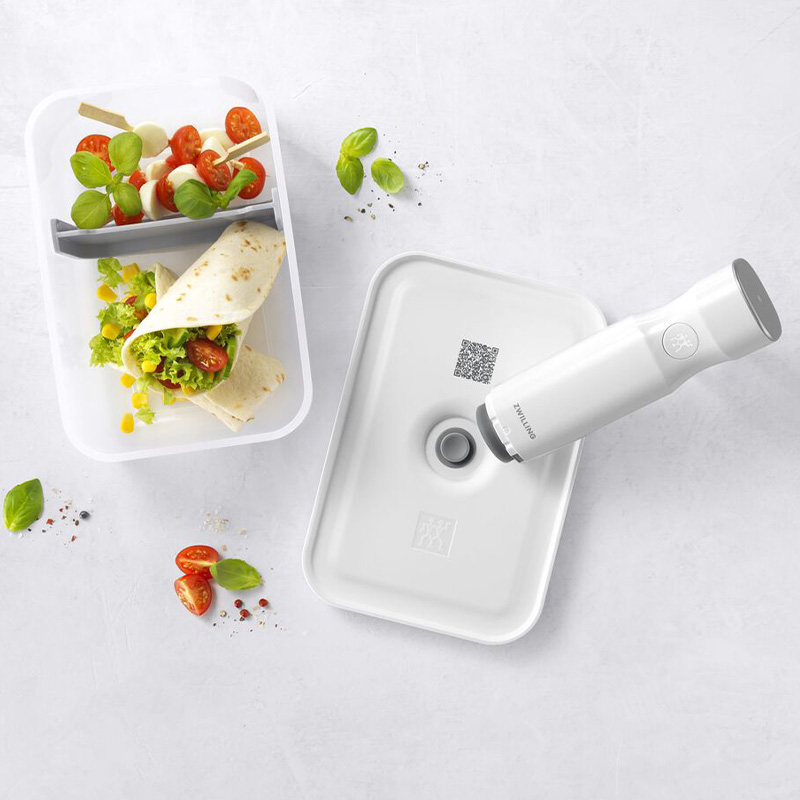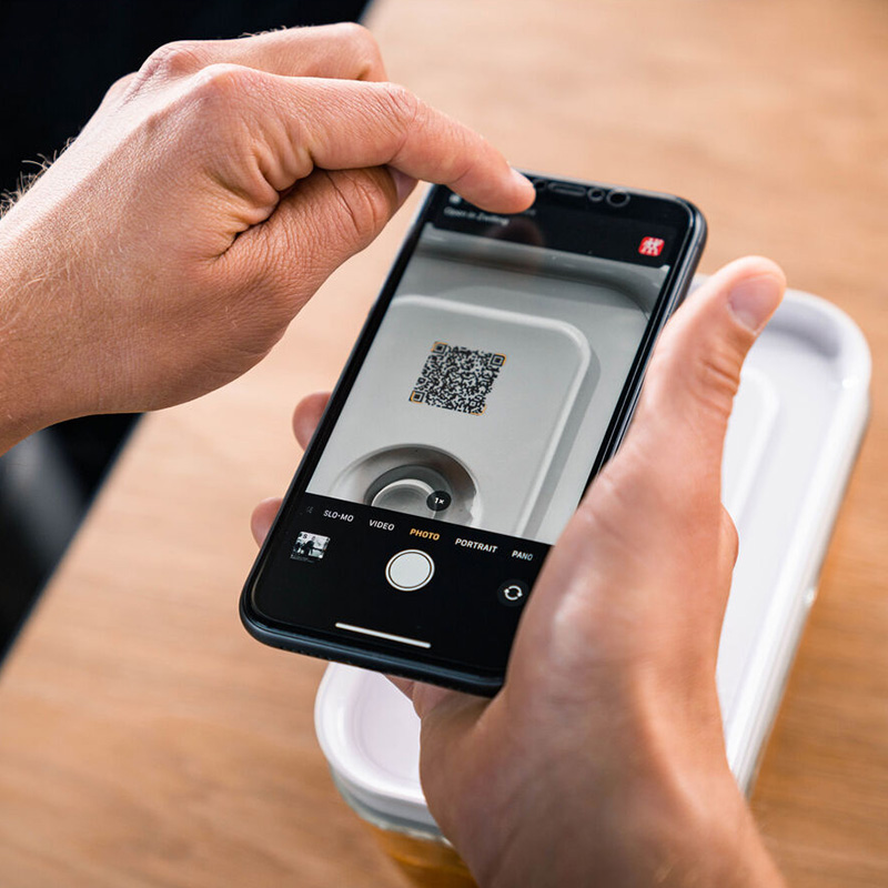 У додатку ZWILLING Culinary World ви зможете легко стежити за продуктами: просто відскануйте QR-код на кришці контейнера і отримуйте необхідну інформацію - коли прийде час використати продукти, додаток автоматично відправить вам нагадування. Вакуумний контейнер стійкий до заморожування, підходить для мікрохвильової печі і посудомийної машини.