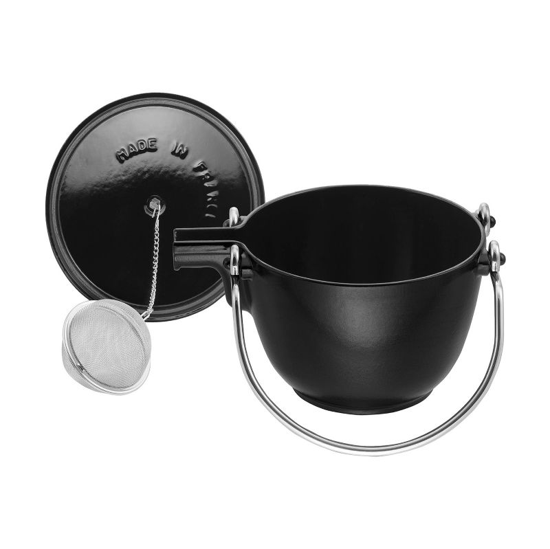 Для ідеальної чайної насолоди вода повинна швидко нагрітися, а потім довго залишатись теплою. У випадку чайника Staub це забезпечується винятковими здібностями чавуну: він дуже швидко поглинає тепло та рівномірно віддає його всередину. Чорне емальоване покриття усередині чайника дозволяє зберегти справжній смак чаю. У комплект до чайника входить ситечко для чаю, яке кріпиться до внутрішньої сторони кришки. Ручки з нержавіючої сталі не нагріваються і допомагають безпечно наливати напій, оскільки щільно закривають та утримують кришку.