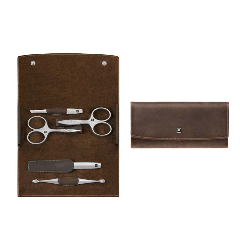 - набор упакован в коричневый кожаный футляр с бархатным покрытием внутри